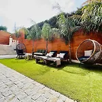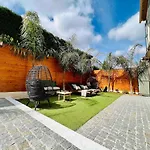 Von einer Terrasse dieser Unterkunft aus können Gäste einen Ausblick auf den Garten genießen. Diese Villa verfügt über ein Badezimmer mit einer Badewanne und einem Whirlpool.